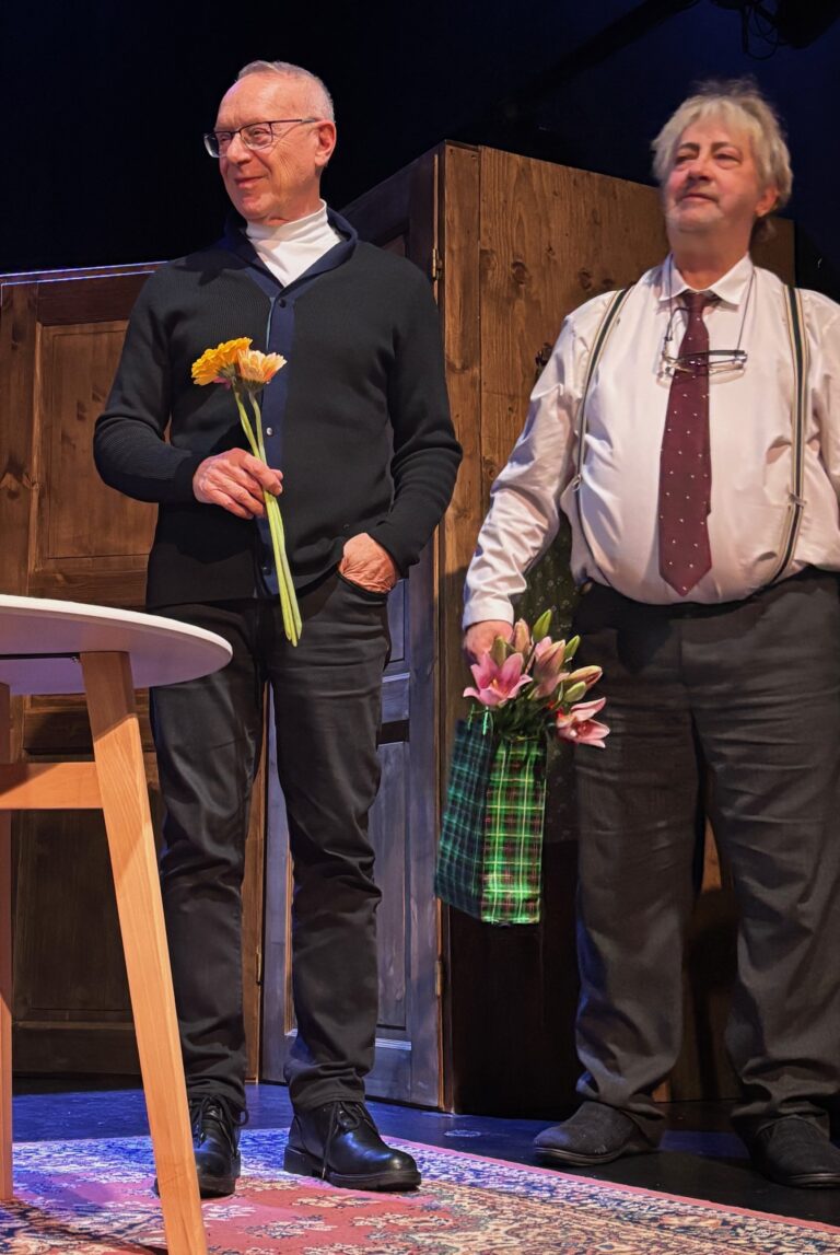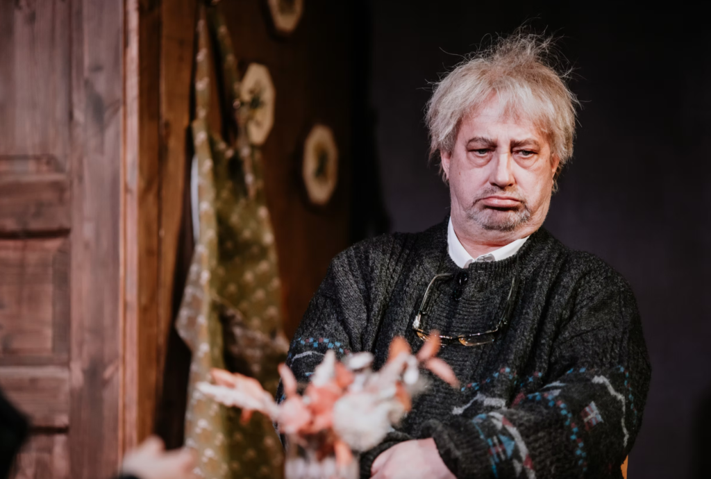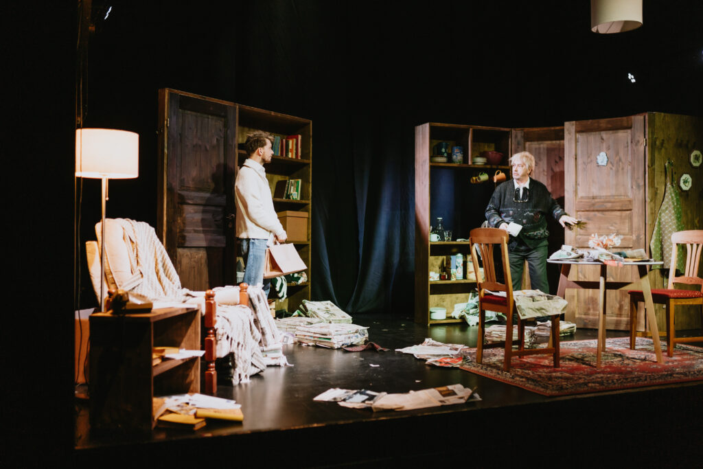 Opening in February, 2026, the Temufi Theatre production of Mr. Greeni Külaline in Viljandi will continue throughout the year. Translated by Peeter Volkonski, directed by Erki Aule, it stars Raivo Rüütel as Mr. Green and Silver Kaljula as Ross Gardiner, with a production design by Marje Sepp and original music by Martin Aulis. Photographs by Kevin Kohjus.